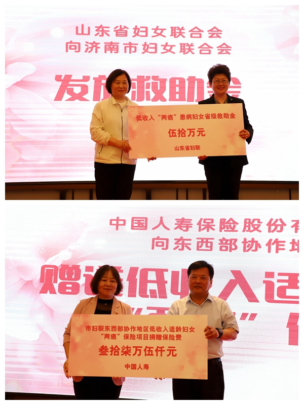 签约仪式上,济南市妇联与中国人寿济南市分公司签定了2024年济南市低收入适龄妇女“两癌”保险采购合同,我市3.24万名18-70周岁低收入妇女将免费享受总保额9.72亿元的“两癌”保险;中国人寿济南市分公司向东西部协作地区临夏和武隆两地1.5万名低收入妇女捐赠保费37.5万元、保额1.5亿元的“两癌”保险。同时,省妇联向市妇联发放50万元低收入“两癌”患病妇女救助金。莱芜区妇联,中国人寿商河支公司、历城支公司进行交流发言。