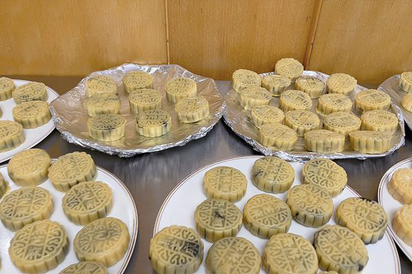 工作人员提前精心准备了各种馅料,有五仁、黑芝麻、蛋黄、豆沙等。大家欢聚一堂,在面点师的帮助指导下,一起揉面团、包馅、入模、压出成型,一个个圆圆地月饼制作完成,将自己心中美好的祝愿印制在月饼上。图案精美,满满成就感。大家做了近300个月饼,数量最多的前三名获奖。