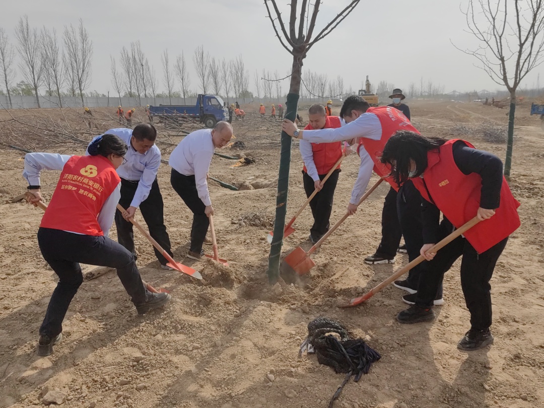 中行济南槐荫支行开展“党建引领添新绿 植树造林开新局”主题党日活动 章丘农商银行与省联社济南办事处开展“学雷锋精神 助生态保护”党建共建暨志愿植树主题党日 省联社济南办事处机关第一党支部、机关第五党支部与章丘农商银行机关第四党支部到济南植物园联合开展“学雷锋精神 助生态保护”党建共建暨志愿植树主题党日。 周日一早,众人准备好铁锨、洋镐、水桶等植树必备工具在济南植物园集合,经过20分钟的步行,党员到达植树点开展学雷锋志愿义务植树活动,从刨坑挖穴、扶植树苗到培实新土、围堰浇水,衔接有序,配合默契。众人拾柴火焰高,不到一上午时间,便种出一片“希望林”,全体党员厚植“脚踏实地埋头苦干”的精神,坚定“全面推进乡村振兴”的决心,纷纷表示将以此片树林为起点,不断深化合作,以实际行动全面助推“乡村振兴”战略和绿色低碳高质量发展先行区建设。 长城人寿山东分公司开展“不负青山 星耀长城”活动 同植一片绿 共建友谊林 恒丰银行济南分行与中建八局携手开展植树护绿志愿服务活动 握指成拳、聚沙成塔。此次学雷锋志愿植树活动是恒丰银行“恒青微光”志愿活动的一部分,也是中建八局“建证未来”志愿服务活动的重要实践。通过此次活动,恒丰银行济南分行与中建八局将绿色播种在春天里,让绿色环保的理念更加深入人心,带动更多人加入到播撒绿色、爱护环境、保护大自然的行动中来。 中意人寿山东省分公司举办“生态黄河 双碳责任”2023植树大行动 中意人寿山东省分公司履行社会责任,积极服务兼具环境和社会效益的各类活动,为黄河流域生态保护和高质量发展注入金融力量。 启动仪式上,中意人寿山东省分公司党支部书记、总经理陆生林与志愿者们一起学习了“黄河生态文明十条”。此外,中意人寿山东省分公司被授予“绿色企业责任公民”荣誉称号。“此次公益植树活动是分公司践行双碳战略和绿色金融的具体行动,充分展示了中意人扎根本土、植绿护绿的精神风貌,为建设更加“中意”的黄河两岸做出贡献。”陆生林表示。 济阳农商银行组织开展黄河流域生态保护志愿服务活动 3月10日,济阳农商银行组织的义务植树活动在济南新旧动能转换起步区崔寨河段黄河大堤如火如荼地开展,济阳农商银行积极组织发动,广泛号召党员干部、团员青年一起行动携手志愿同行、共植一方新绿。 黄河岸边是家乡,志愿红们向绿而行,在母亲河岸种下一棵树、为黄河廊道增添一片绿,用植树护绿的实际行动筑牢黄河生态屏障、护佑黄河安澜,助力黄河流域生态保护和高质量发展。让植树不再是“节”、让绿色根植于“行”。