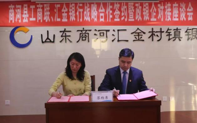 2月15日,为进一步解决我县小微企业融资难、融资成本高的问题,更好地为企业提供融资服务,山东商河汇金村镇银行与县工商联(总商会)在商河汇金银行举行战略合作签约仪式暨政银企对接座谈会。山东商河汇金村镇银行董事长付学宁、县工商联主席杨凌雁、15家商会会长及部分企业家参加活动。
